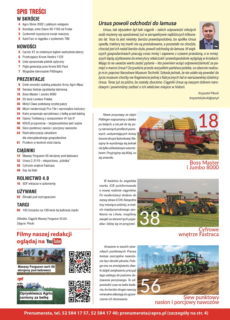 Magazyn Rolniczy Przegląd Techniczny 4/2020. Wydawca APRA sp. z o.o.