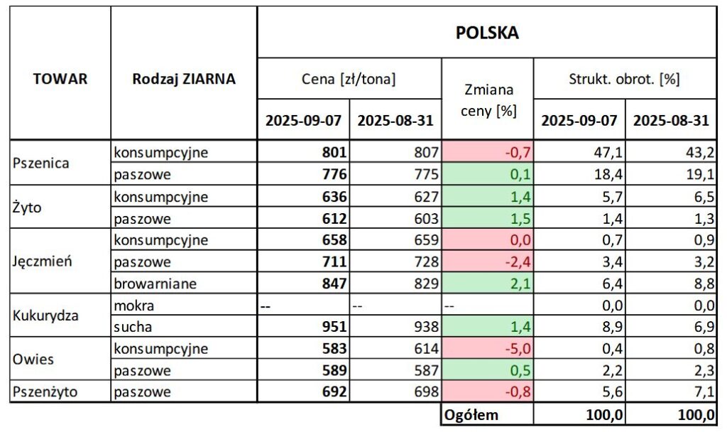 A jak wyglądają aktualne ceny zbóż w Polsce – według państwowego monitoringu? Jak co tydzień zaglądamy do biuletynów Zintegrowanego Systemu Rolniczej Informacji Rynkowej (za który odpowiada ministerstwo rolnictwa). Najnowsze ukazały się 11 września.