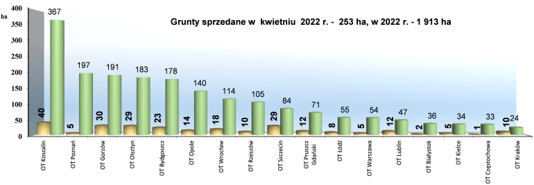 Krajowy Ośrodek Wsparcia Rolnictwa gospodaruje nieruchomościami rolnymi będącymi w Zasobie Własności Rolnej Skarbu Państwa.  W miesiącach I-IV 2022 r. KOWR wydzierżawił ponad 11,8 tys. ha oraz sprzedał niemal 2 tys. ha państwowych gruntów. Z przytoczonych danych wynika, że rolnicy preferują dzierżawę.