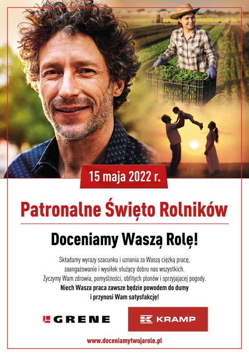 Rolnicy i rolniczki, ciężko pracujący na roli i w swoich gospodarstwach zasługują na swoje święto. Firma Kramp i Grene po raz trzeci przenosi obchody Patronalnego Dnia Rolników 15 maja do sklepów detalicznych Grene na terenie całej Polski.
