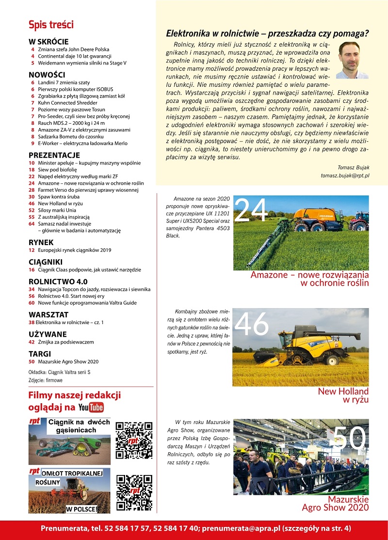 Magazyn Rolniczy Przegląd Techniczny RPT wydanie 3/2020. Wydawca_APRA sp. z o.o.