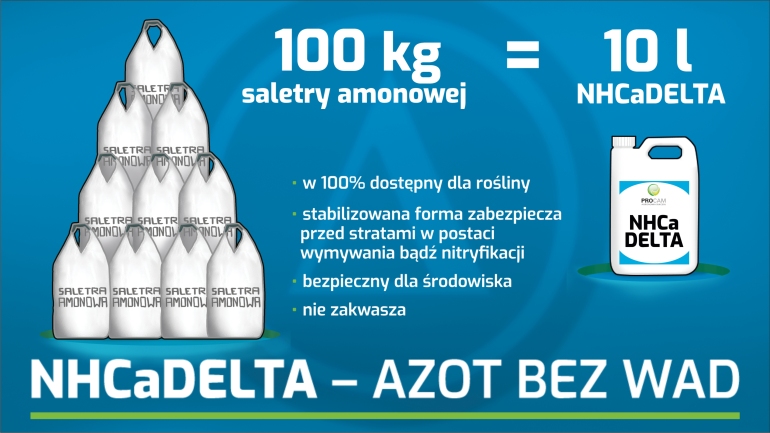 Azot jest niezaprzeczalnie jednym z podstawowych składników pokarmowych wpływającym na plonowanie roślin. W zależności jaką uprawę weźmiemy pod uwagę zapotrzebowanie tego składnika wynosiło będzie od 25 kg/t plonu wraz ze słomą pszenicy do nawet 60 kg/t plonu wraz ze słomą rzepaku. Oczywistym jest, że podstawowa dawka tego składnika podana powinna zostać doglebowo. Zmieniające się jednak warunki pogodowe oraz coraz większa wrażliwość odmian na braki w dostępności tego składnika zmusza rolników do ponownego przeanalizowania sposobów podaży azotu. Pierwszym z czynników mocno limitujących w ostatnich latach ilość dostarczonego roślinom azotu jest susza wiosenna która uniemożliwia efektywne podanie tego składnika do korzeni. Brak wody z hamuje rozpuszczanie granul, zwiększa straty powodowane utlenianiem oraz hamuje pobór składnika przez niedostateczną ilość roztworu glebowego. Aby dostarczyć maksymalnie dużo azotu w takich warunkach konieczne jest jego dostarczanie roślinom bezpośrednio a więc przez liście. Oczywiście skuteczność takiego zabiegu w dużej mierze zależeć będzie od jakości preparatu jakim go wykonamy i form składnika w jakich azot zostanie podany. Idealnym rozwiązaniem które pomoże w dostarczeniu azotu bezpośrednio przez liście będzie nawóz NHCaDelta, który w swoim składnie zawiera stabilizowany azot z wapniem. Dzięki temu możemy zapewnić najwyższą pobieralność tego składnika wpływając na plon i jego jakość uniezależniając podanie azotu od opadów atmosferycznych. Kilkukrotne zastosowanie NHCaDelta w czasie wegetacji zmniejsza ilość posypowych nawozów azotowych jakie musimy zastosować, dodatkowo wpływając korzystnie na plon. Azot zawarty w nawozie wsparty został przez technologię poprawiającą wykorzystania azotu- NUE czyli prekursory grupy aminowej. Dzięki temu składniki są szybciej pobierane przez roślinę oraz efektywniej wbudowywane w białka. Technologia NUE wpływa na metabolizm azotu w roślinie poprawiając transport i wykorzystanie tego składnika przez rośliny niezależnie od tego w jakiej formie azot ten został podany. Dodatkowo stymulowane są hormony roślinne wpływające na przyrost biomasy, kwitnienie czy ilość oraz jakość nasion. NHCa Delta zastosowana w fazie kłoszenia korzystnie wpływa na ilość białka w ziarnach zbóż.